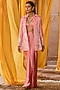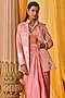 Featuring a rose pink draped skirt in satin base. It is paired with a blouse and an embroidered jacket. Accentuate it with statement jewellery, a potli bag and embellished heels, ideal for a festive occasion, sangeet, wedding or engagement ceremony.