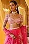 Featuring a soft coral pink lehenga in organza base with floral motif hand embroidery. It is paired with a net hand embroidered blouse and an organza dupatta. Accentuate it with statement jewellery, a potli bag and embellished heels, ideal for a festive occasion, sangeet, wedding or engagement ceremony.