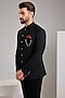 Featuring a black bandhgala in jacquard base. It is paired with trousers. Style it with loafers for a reception, sangeet, engagement or wedding ceremony.