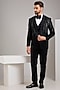 Featuring a black tuxedo in japanese stretch fabric base with beads, sequins and cutdana hand embroidery. It is paired with a vest, shirt, trousers and a bowtie. Style it with shoes for a reception, cocktail, engagement or wedding ceremony.