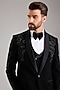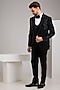 Featuring a black tuxedo in japanese stretch fabric base with french knot hand embroidery. It is paired with a vest, shirt, trousers and a bowtie. Style it with shoes for a reception, cocktail, engagement or wedding ceremony.