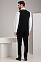 Featuring a black tuxedo in japanese stretch fabric base with hand embroidery. It is paired with trousers, a vest, shirt and a bowtie. Style it with loafers for a reception, sangeet, engagement or wedding ceremony.