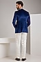 Featuring a blue bandhgala in cotton velvet base with threadwork. It is paired with trousers. Style it with loafers for a reception, cocktail, engagement or wedding ceremony.