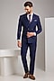 Featuring a blue double-breasted blazer in terry rayon base. It is paired with a shirt and trousers. Style it with shoes for a reception, engagement or wedding ceremony.