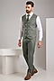 Featuring a green checkered jacket in terry rayon base with notch lapel detail. It is paired with a vest, trousers and a shirt. Style it with a tie and shoes for a meeting or office wear.