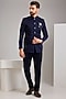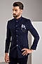 Featuring a navy blue bandhgala in jacquard base. It is paired with trousers. Style it with loafers for a reception, sangeet, engagement or wedding ceremony.