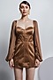 Featuring a brown corset dress in twill satin base with a balloon sleeves.