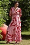 Featuring a red and pink draped shirt dress in linen satin base with print and piping details. Accessorise with statement earrings and heels for a beach or casual wear.