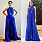 Featuring a royal blue draped jumpsuit in silk, chiffon, and banana crepe base with a fabric belt.