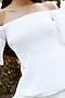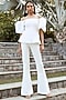 Featuring a white off shoulder pluss top in taffeta base with puffed sleeves and pleats. It is paired with matching bell bottom pants in crepe base.