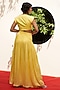 Featuring a yellow overlapped dress in linen satin base with a scallop neck, embroidery, extended shoulders, cut-out waist, hand ruched bottom and a concealed side zipper. Accessorise with statement earrings and heels for a beach or casual wear.