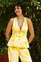 Featuring a yellow and white peplum top in linen satin base with a v-neckline and piping details. Accessorise with pants, statement earrings and heels for a beach or casual wear.